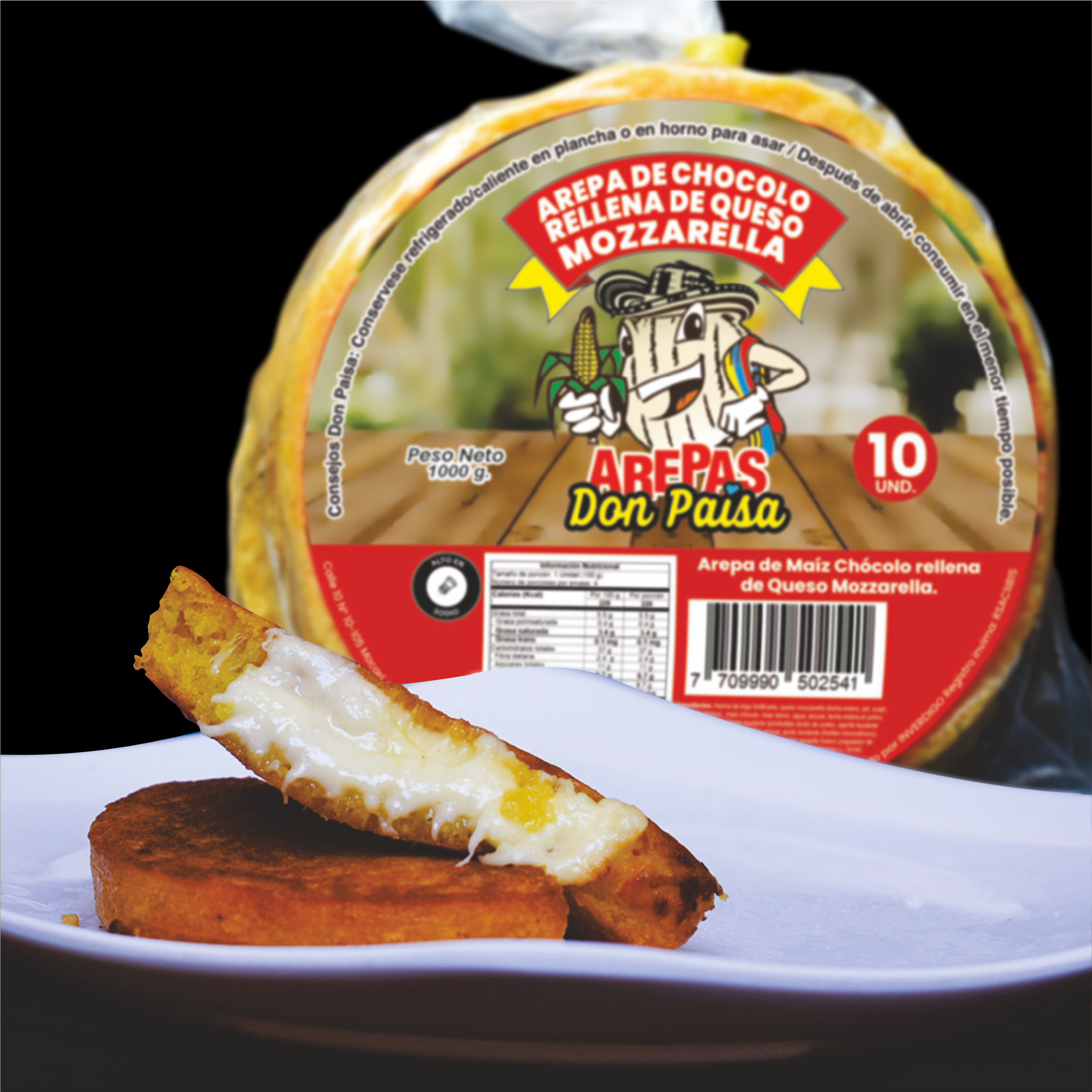 En este grupo estan los que estan hechos a bases del maiz amarillo, como la Arepa de chocolo relleno de queso mozarella.