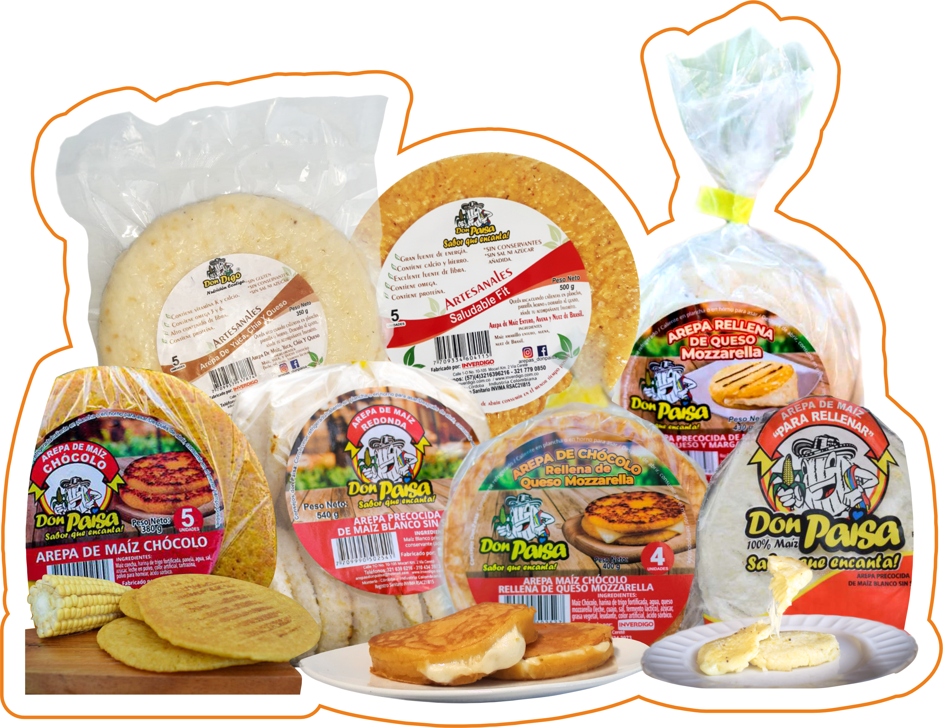 Arepas Don Paisa tiene una gran variedad de productos categorizadas en lineas, para todos los gustos y todas las dietas