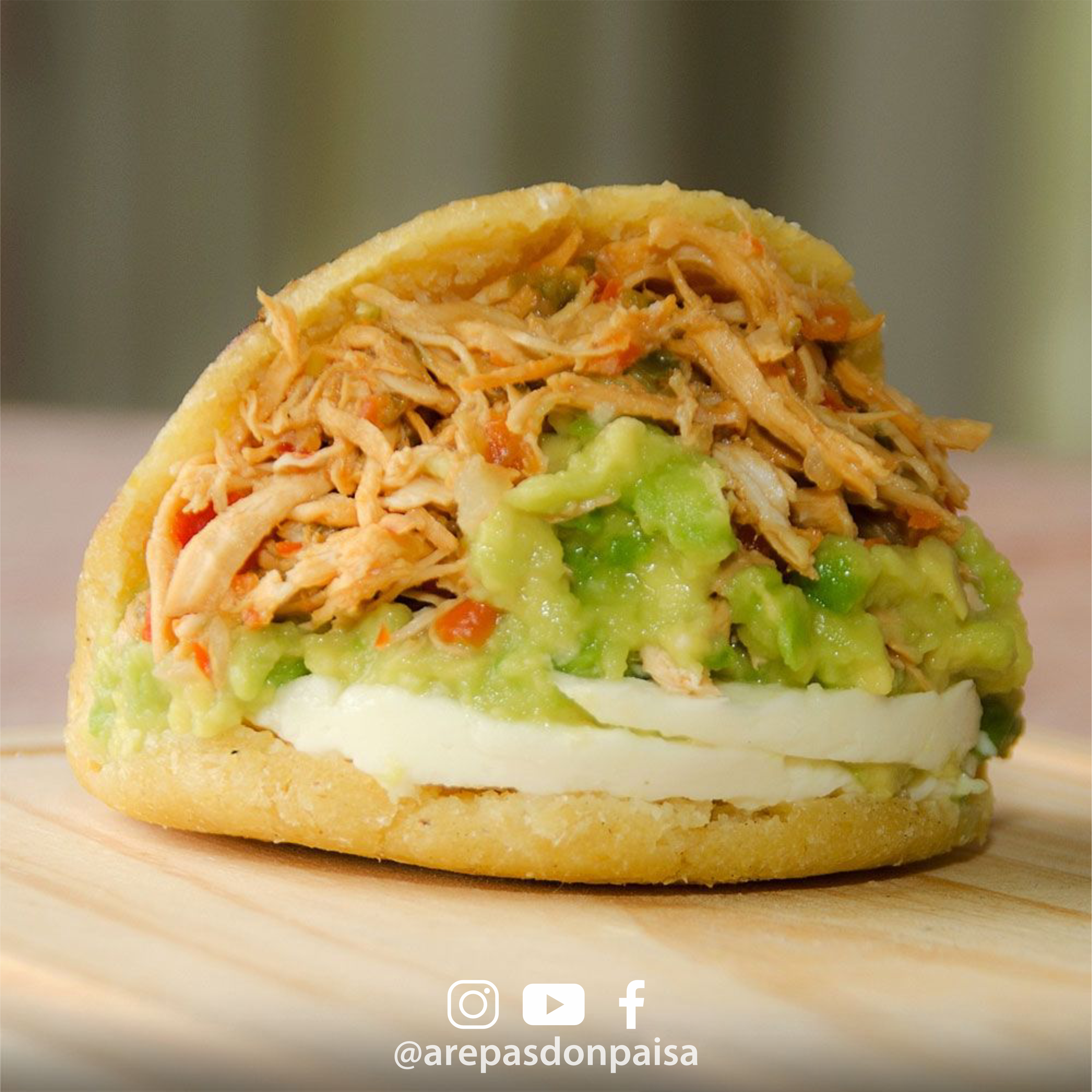 Luego abrimos la Arepa Don Paisa y procedemos a rellenar nuestra arepa con el pollo; y por ultimo adicionamos el aguacate cortado delgado y horicontalmente.